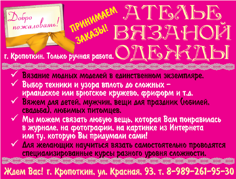Ателье Вязаной Одежды поможет оставаться красивой и стильной